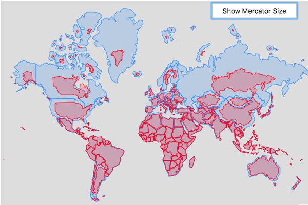 This is why Greenland appears nearly the same size as Africa on many maps. In reality, Africa is about 14 times larger. The closer a landmass is to the poles, the more exaggerated it becomes.
